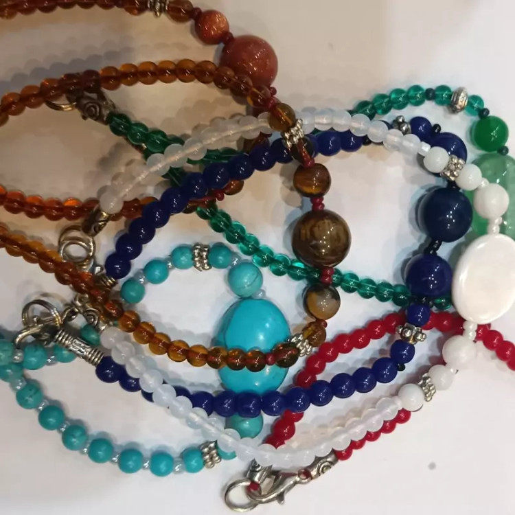 انواع دست بند با سنگها مختلف به درخواست شما رنگ و طرح ارسال می شود این نوع دستبند از سنگهای طبیعی و معدنی و سنگ مصنوعی تولید شده است