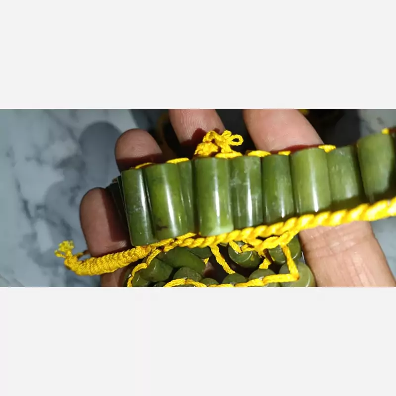 دستبند یشم طبیعی و معدنی اصل 22عدد مهره بافته شده به صورت دست بند بند خفتی محکم برای آرامش و درمانی می باشد کاملآ دست ساز