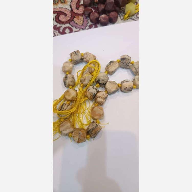 انواع یشم در 3 نوع و جاسپر امپریال سرخ و زرکون زرد و سنگ نقاش یا فسیلی طرح واضح بسیار زیبا هر ریسه به دلخواه مشتری ارسال می شود قیمت برای یک ریسه. می باشد وزن هم تقریبی شما برای فرار از انرژی های منفی یک بار امتحان کنید