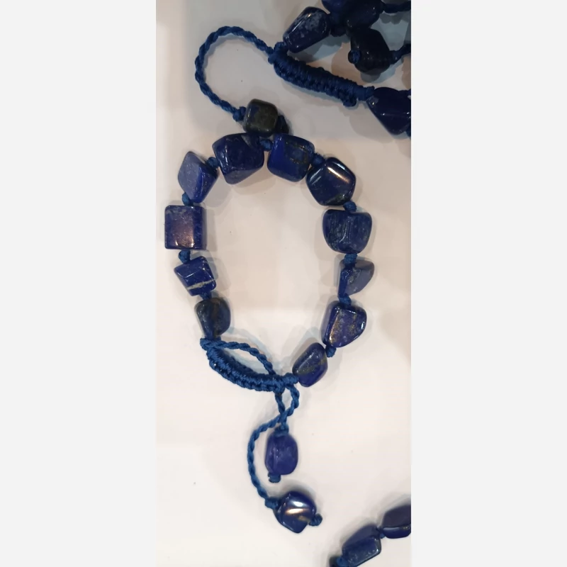 دست بند سنگ لاجورد اصل طبیعی و معدنی با بند کتان طبیعی جهت آرامش وسخن وری و اعتماد به نفس است برای تمام افراد توصیه می شود مخصوصا برای بانوان مواقع اضطراب واقعاً توصیه می شود با ما به فواید هر سنگ ایمان خواهید داشت